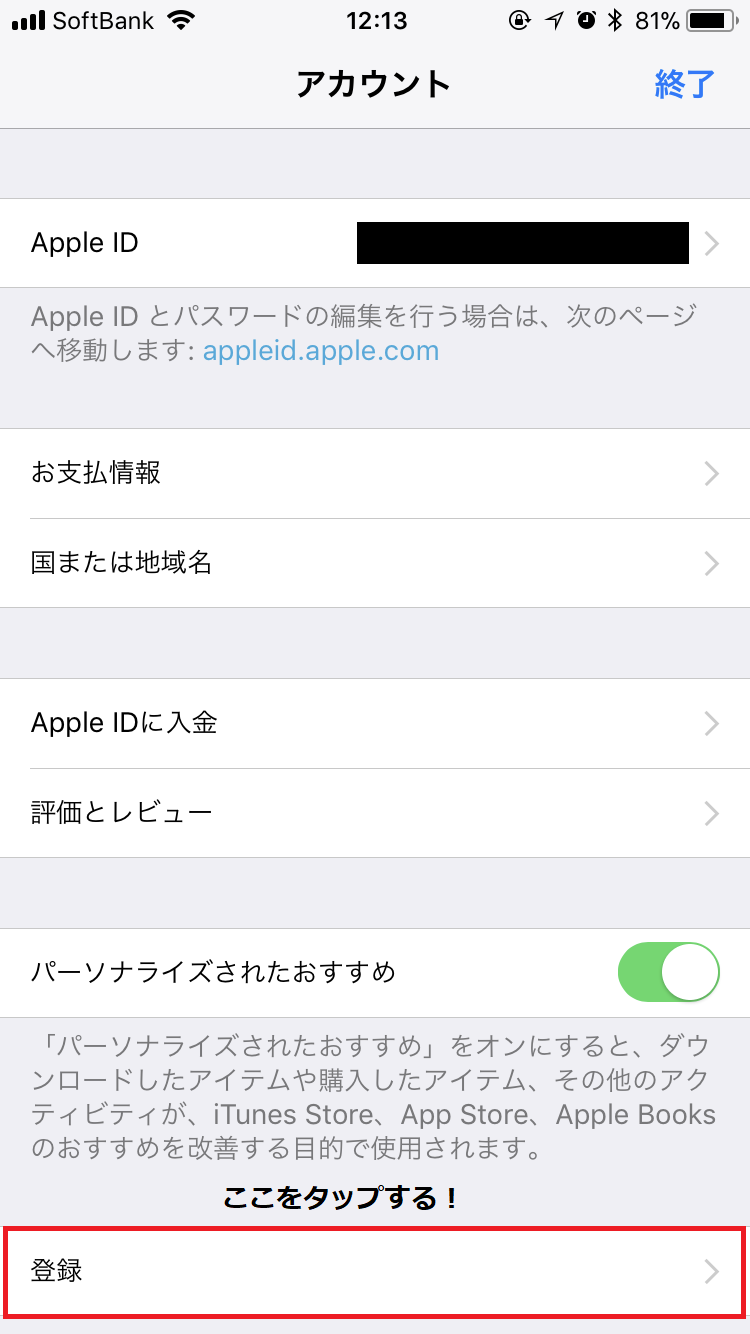 下の方にある「登録」という部分をタップする!