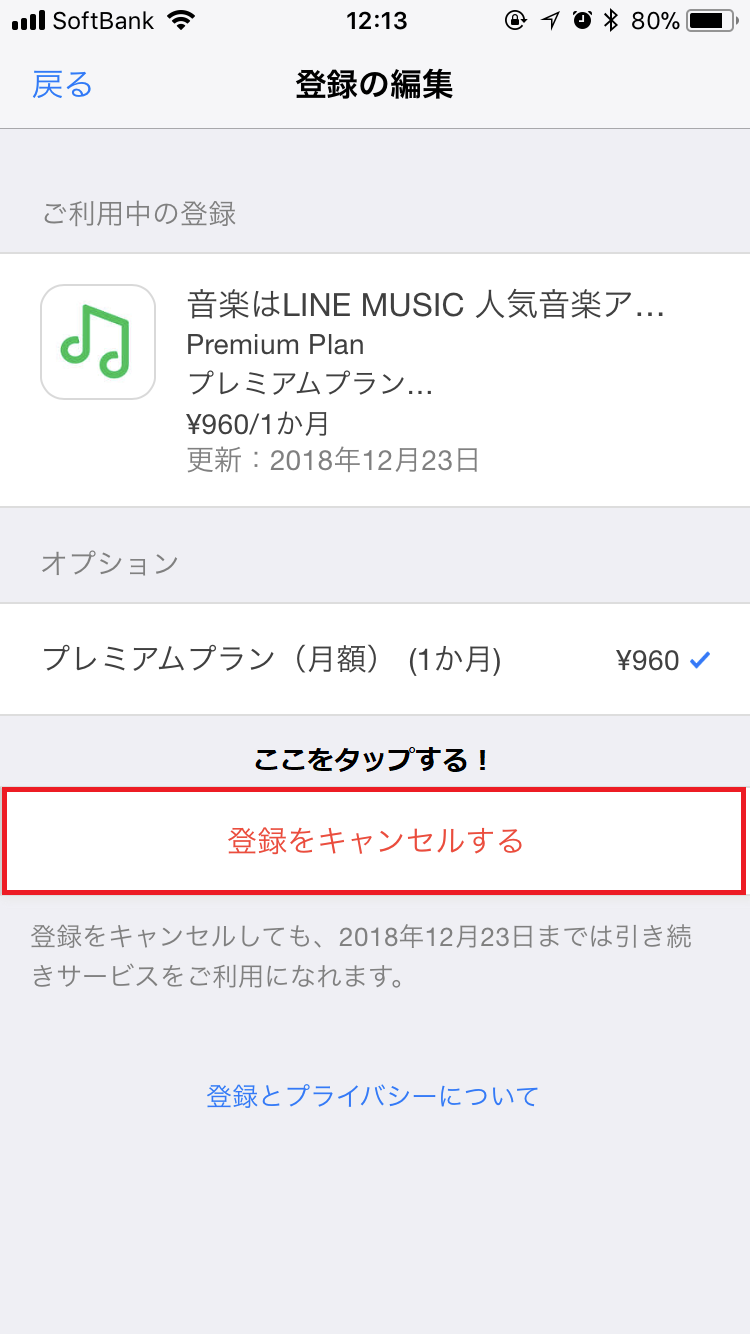 下の方に登録をキャンセルするという項目があるからそこから解除に進める!!