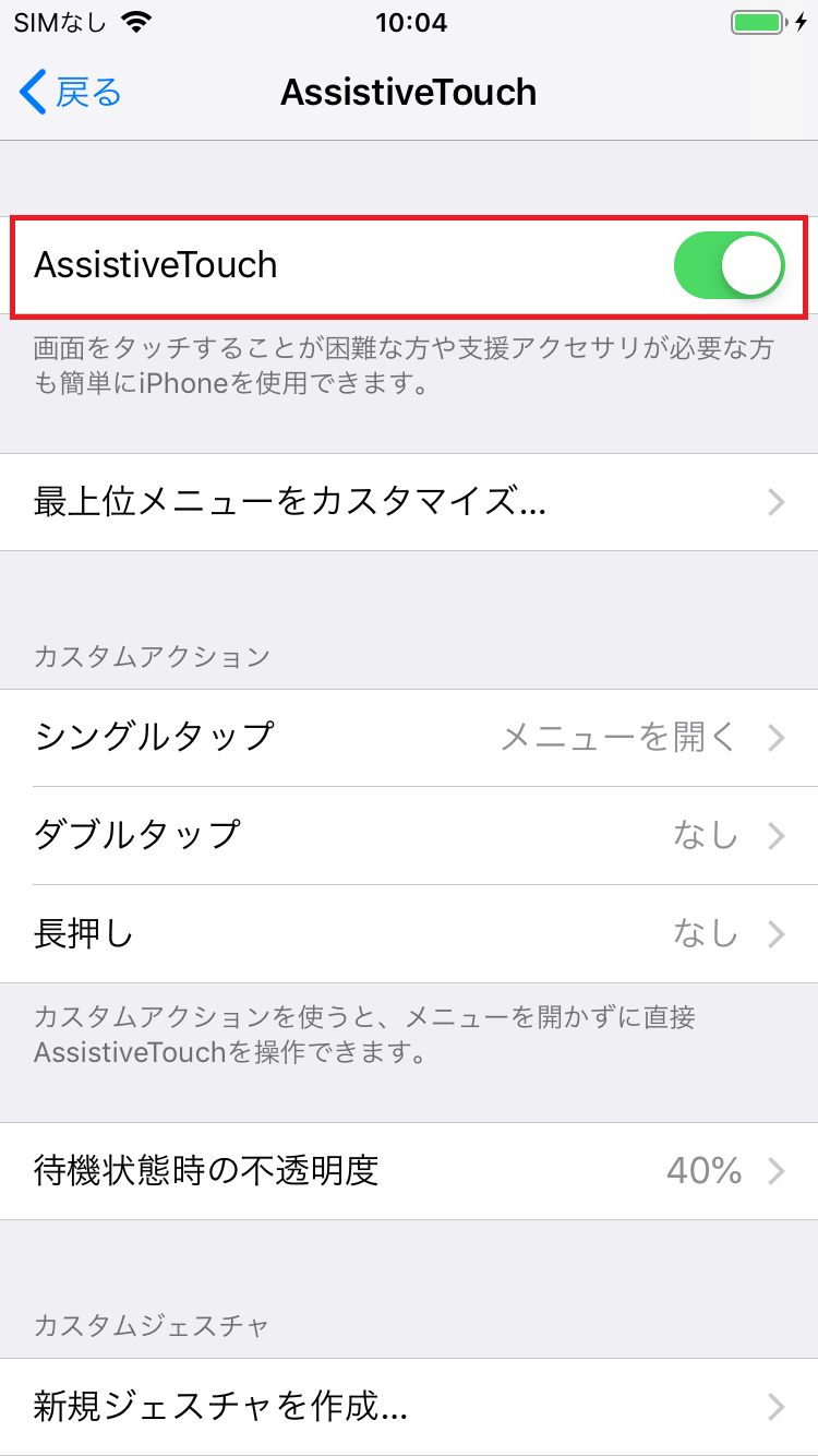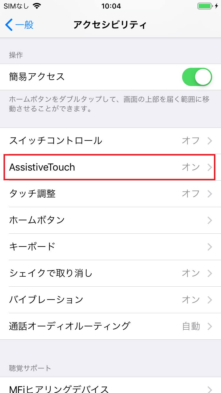 操作の欄に『AssistiveTouch(アシスティブタッチ)』という項目があるのでそれをONにします!