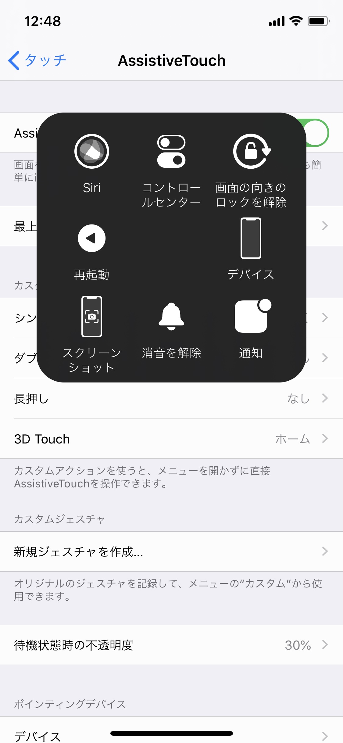 さらにAssistiveTouch(アシスティブタッチ)の下にある項目の