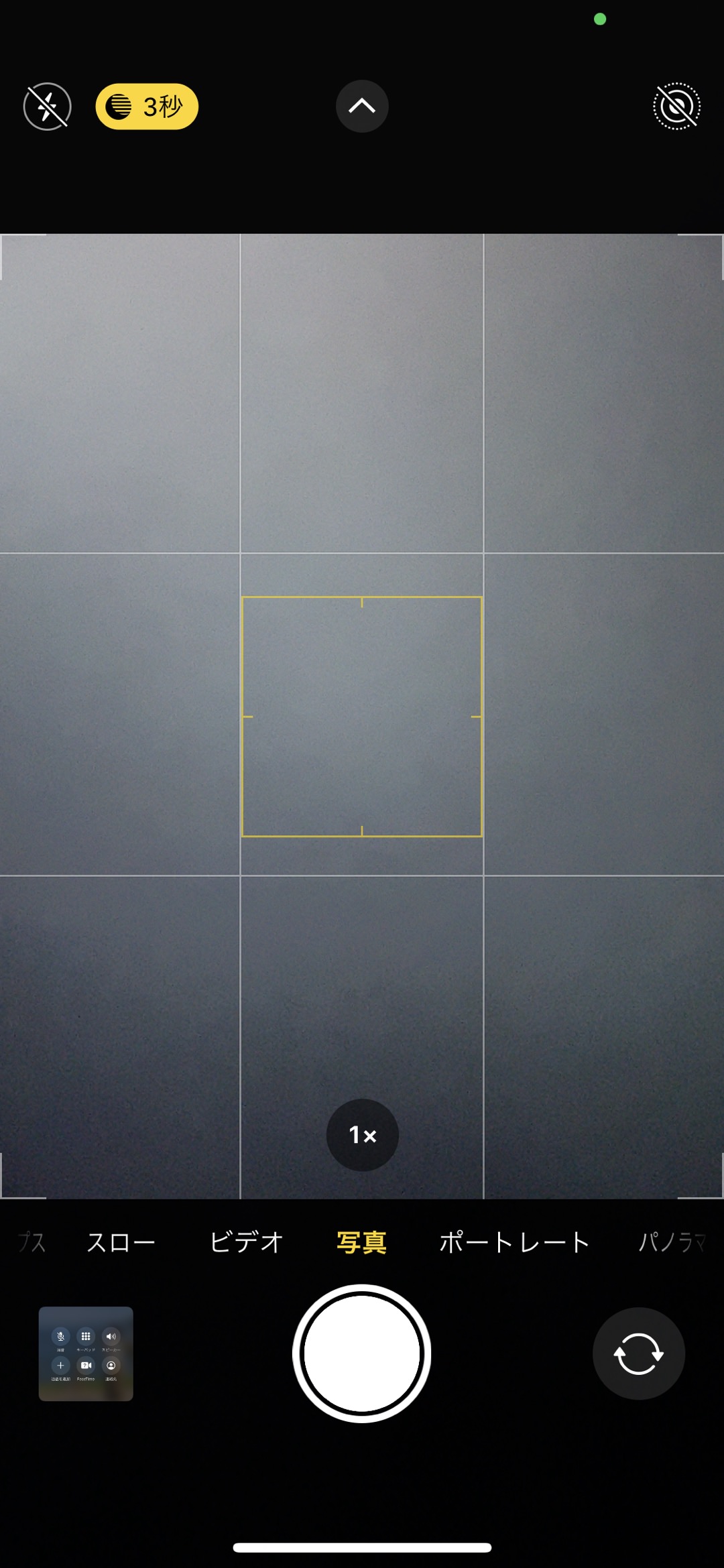 iPhoneの右上に緑色の点が表示されているはずです!