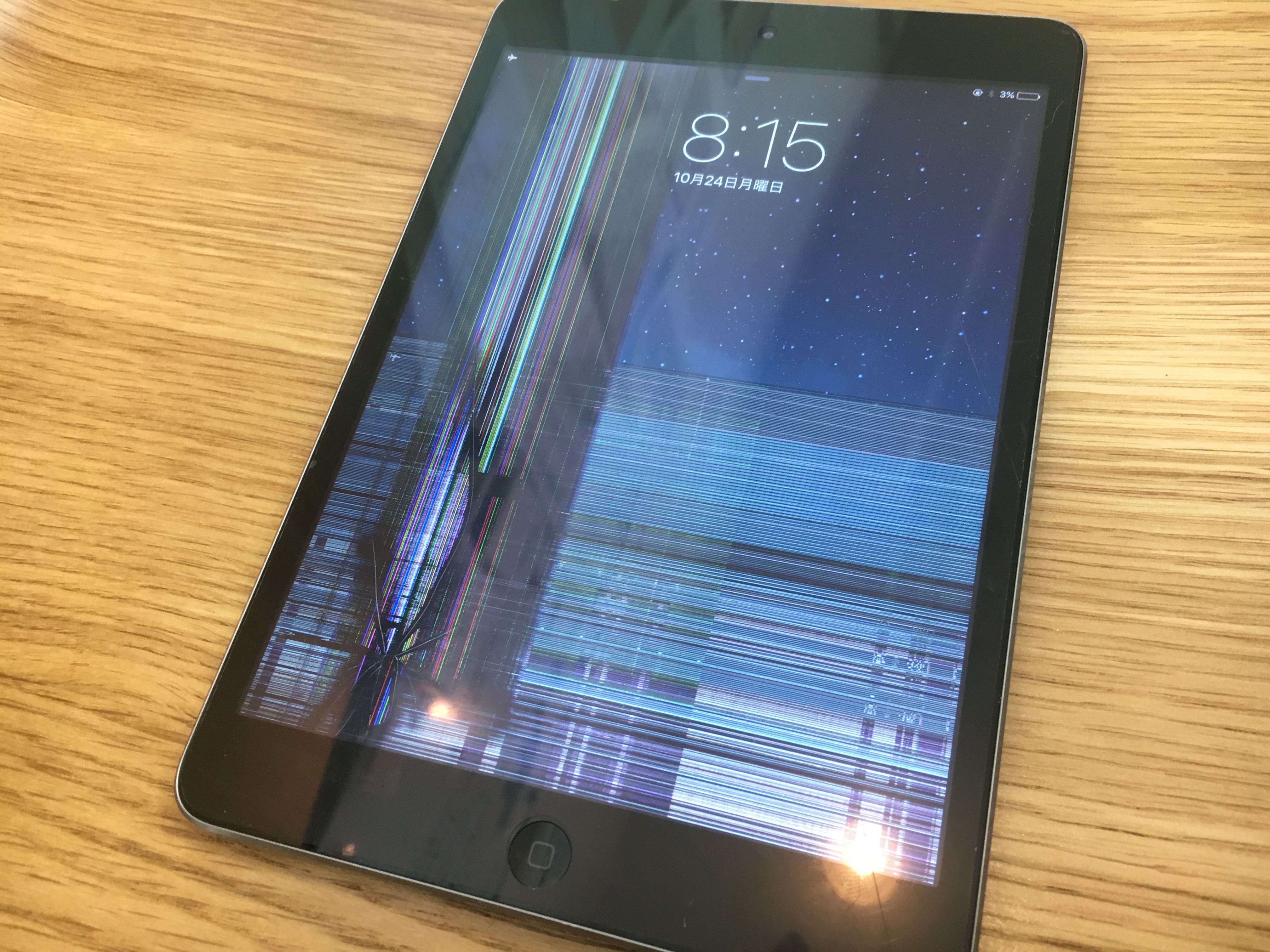 一瞬の不注意によりこんなにも、、、、、ダメージが液晶まで届いてしまっています!!!