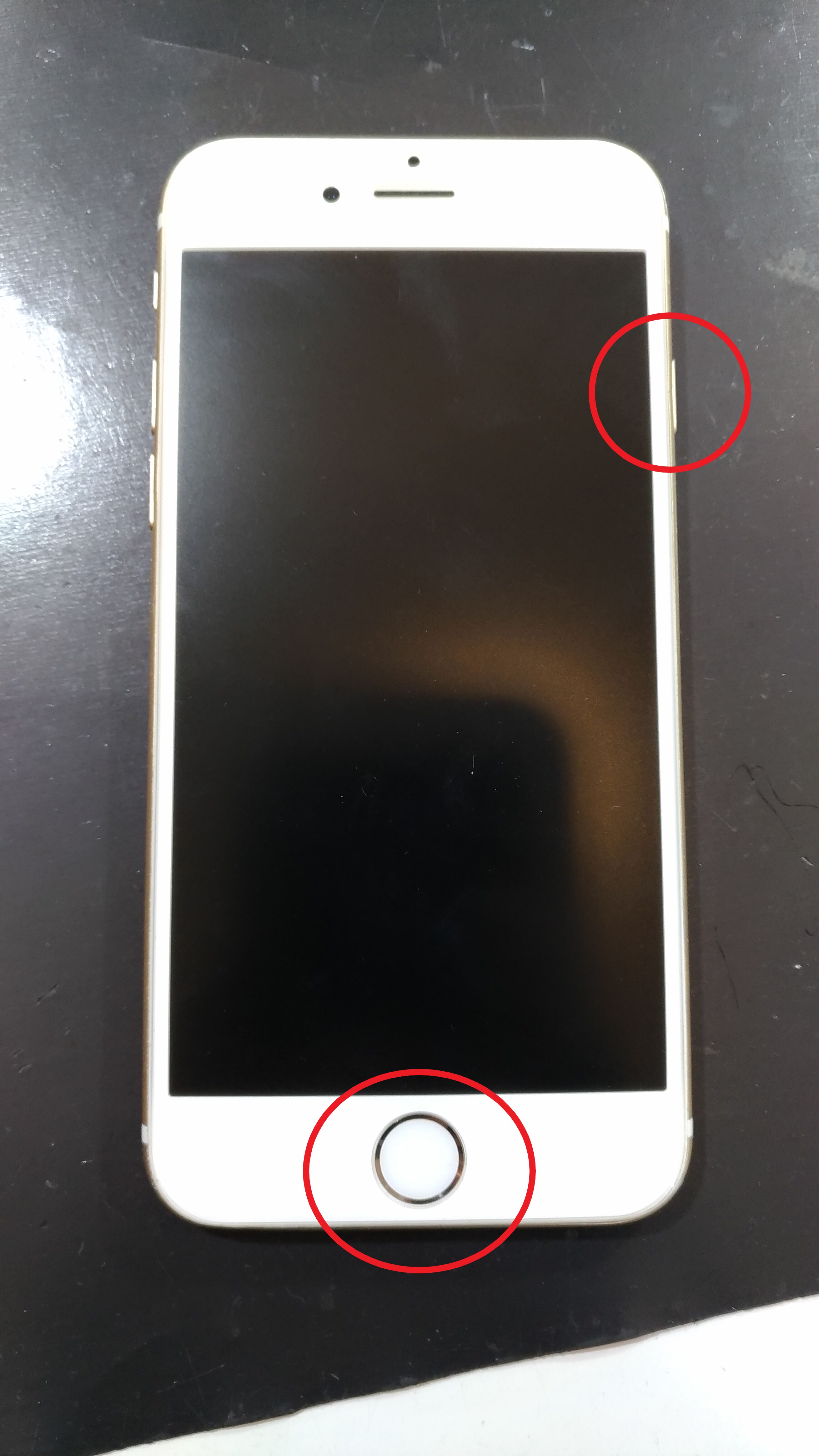 iPhone6sPlusまでは「ホームボタン」+「スリープボタン」の同時長押しとなります。