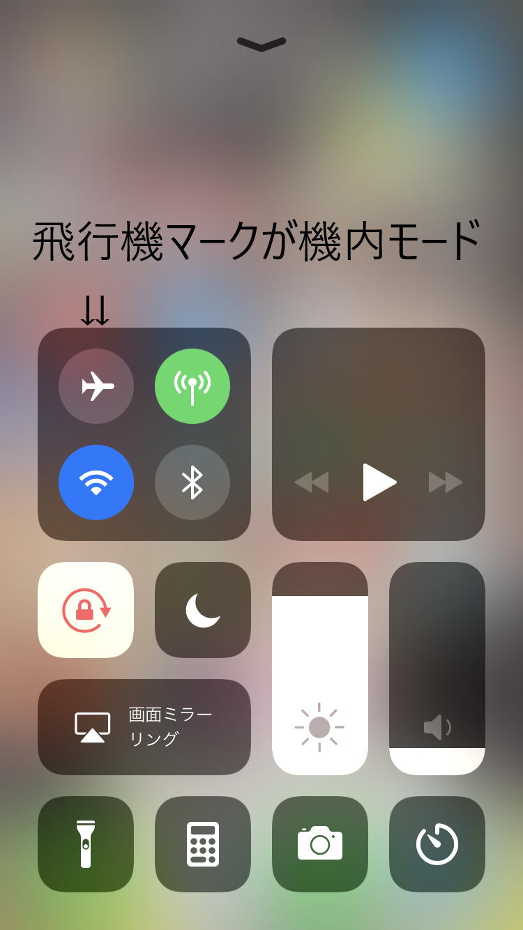 画面下からコントロールセンターを出して、飛行機のマークをタップ。