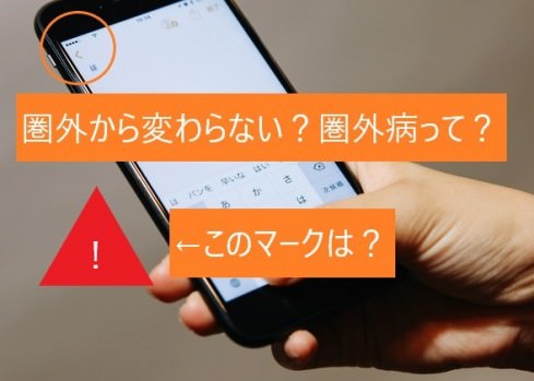 圏外と一緒に、三角の中に「!」が書かれたマークが出ている…。