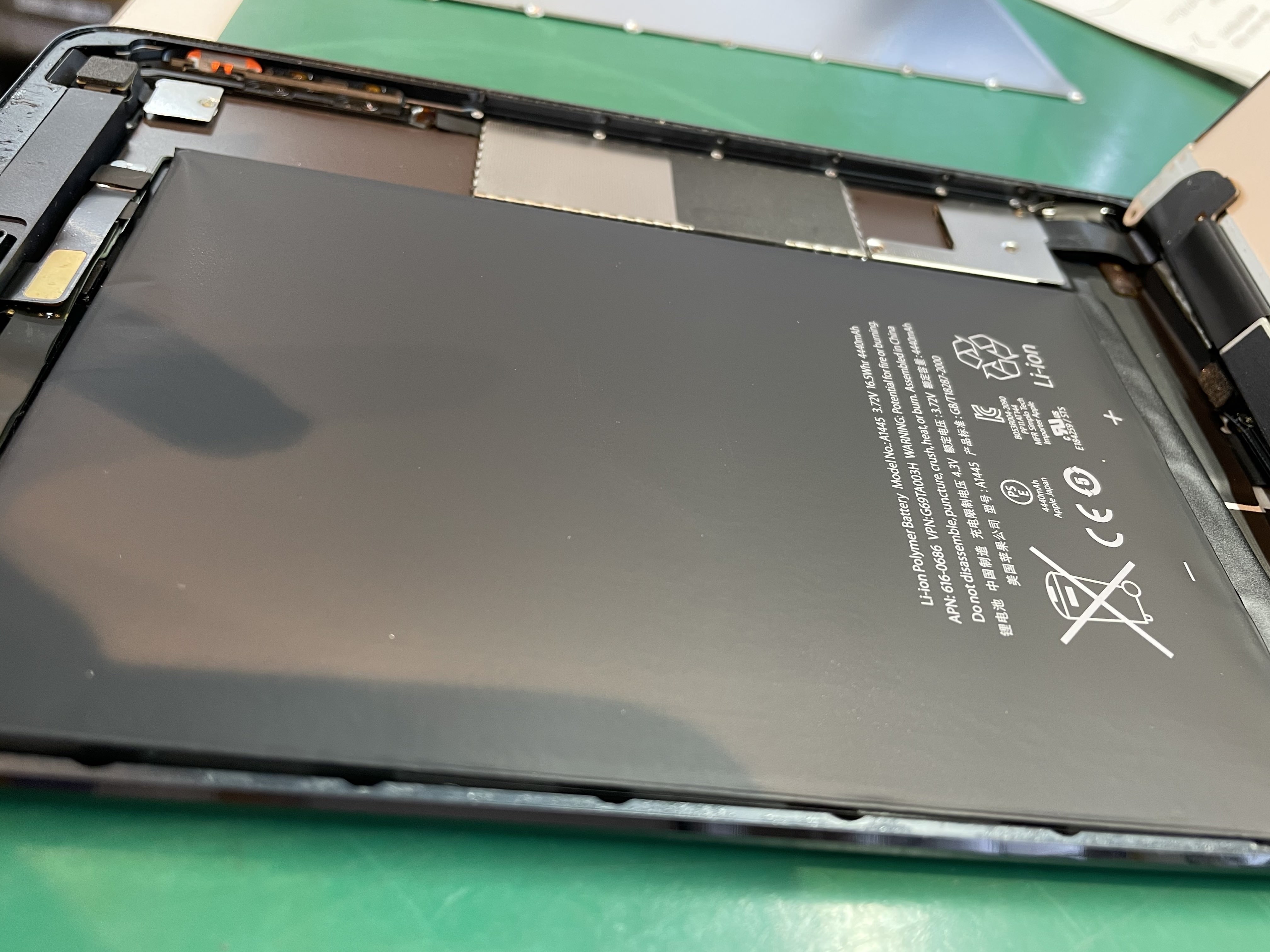 こちらはiPadmini4の内部です。黒い大きな物体がバッテリーです。