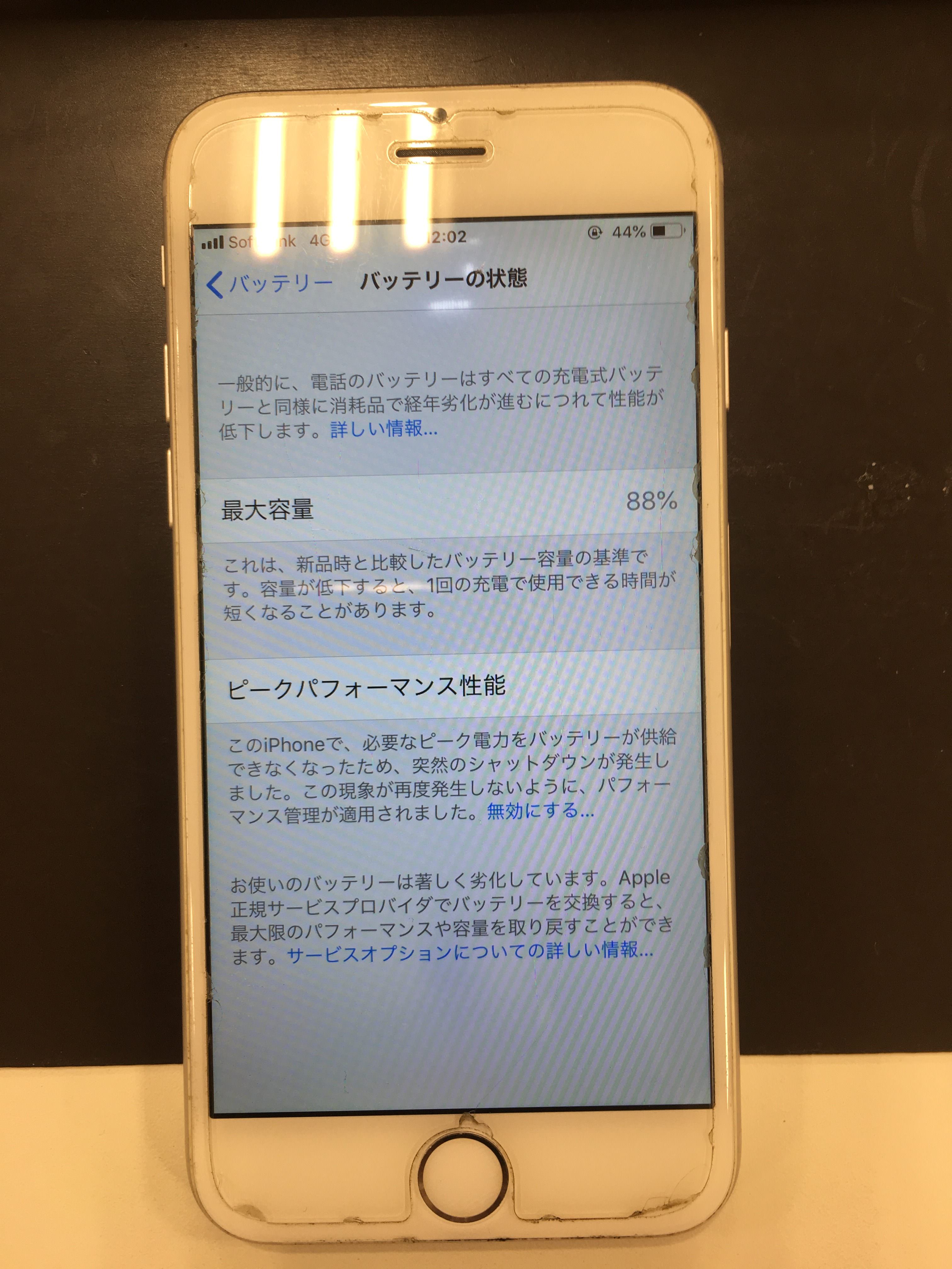 ピークパフォーマンス性能は新品のバッテリーに交換することで表示が戻ります。