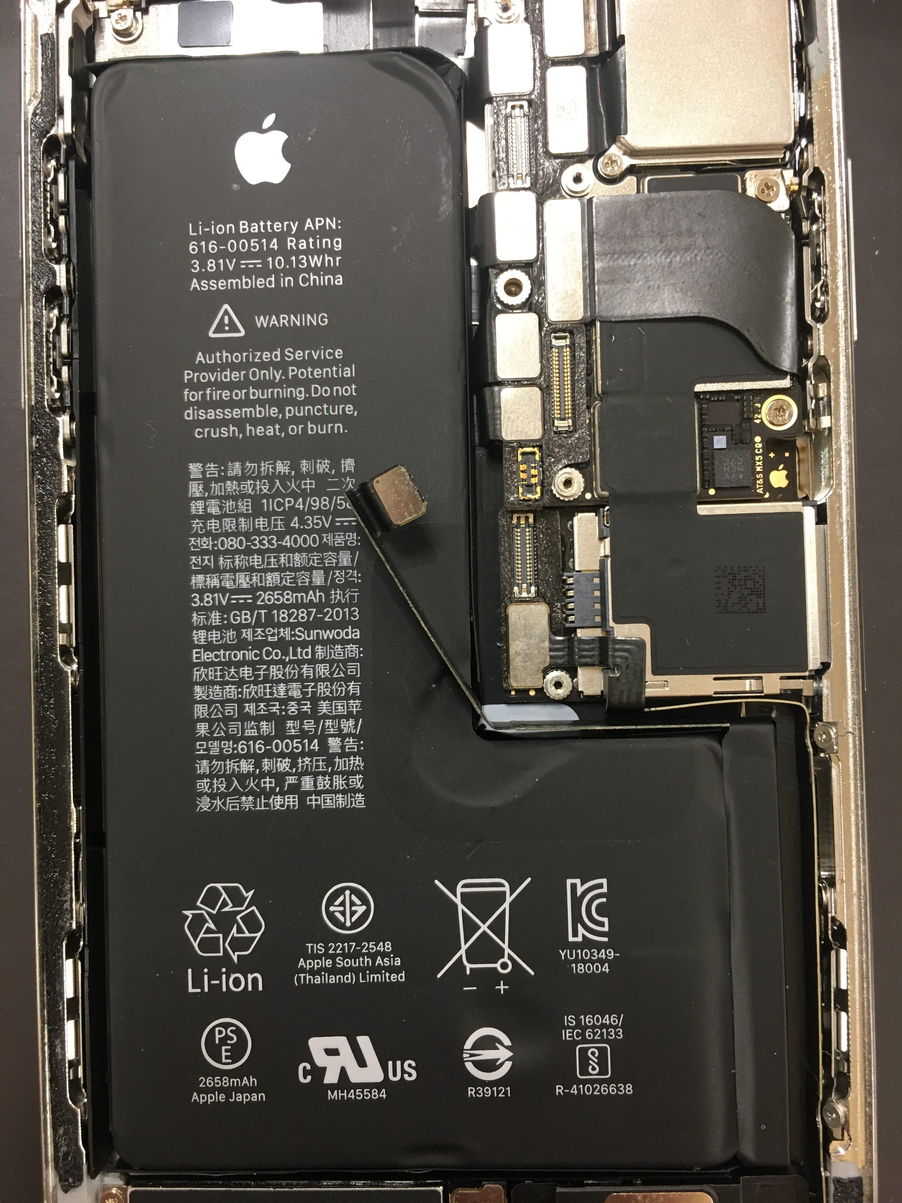 今回お客様から、画面の反応がたまに悪くなったり、iPhoneの動きが鈍くなるとお持ち頂いたのですが、以前石にぶつけて当店で画面修理をした際に「バッテリーにわずかにへこみがある」と伝えたのを覚えていらっしゃり、それが原因ではないかとバッテリー交換を希望されていました。繰り返し充電して使用するものですし、へこみというのは少し不安ですね。バッテリーの状態としても最大容量85%を下回っており、そのへこみがなかったとしても替え時としてはいいタイミングかと思います。