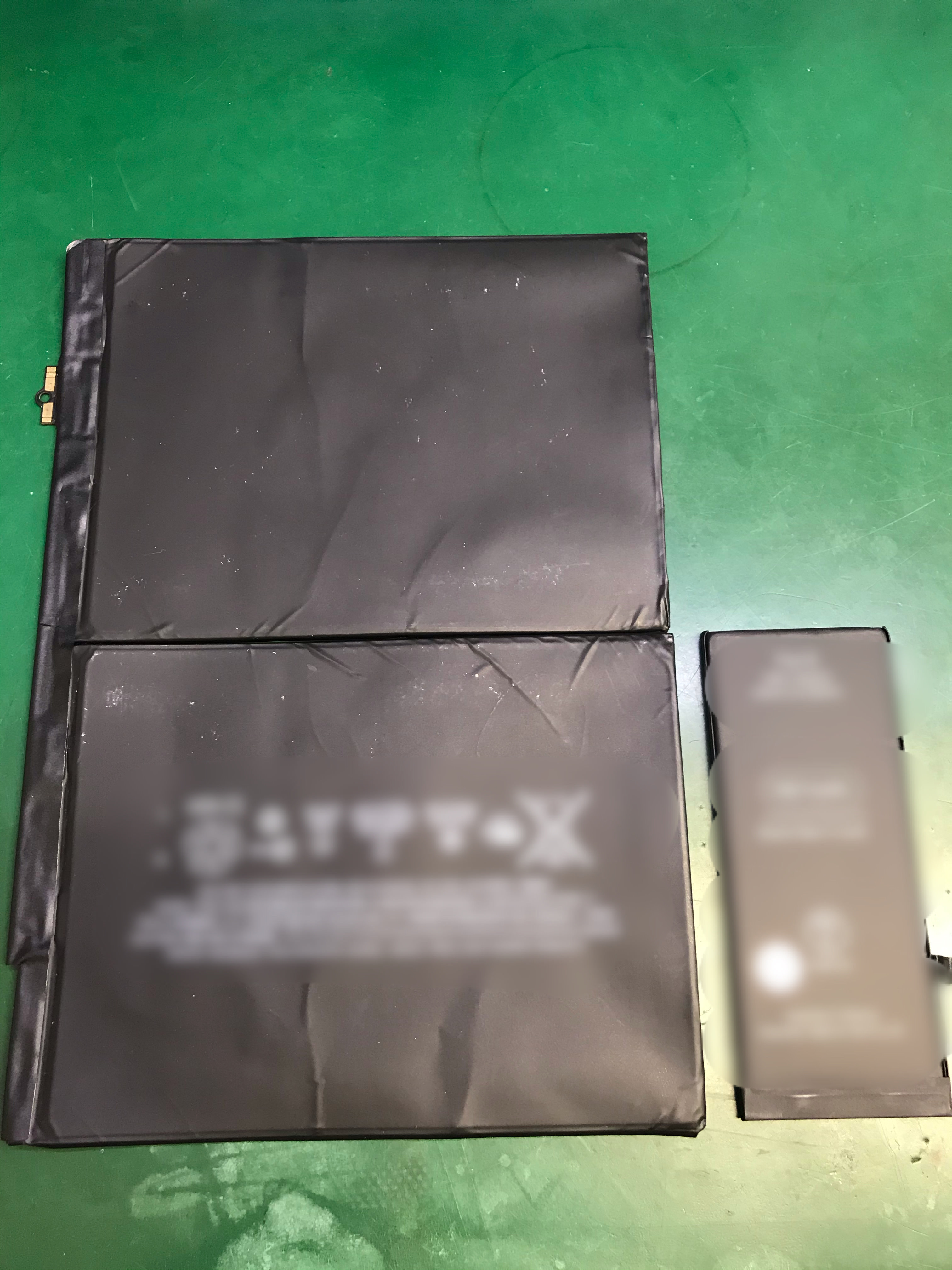 ↑左側(大)がiPadのバッテリー、右側(小)がiphoneのバッテリー