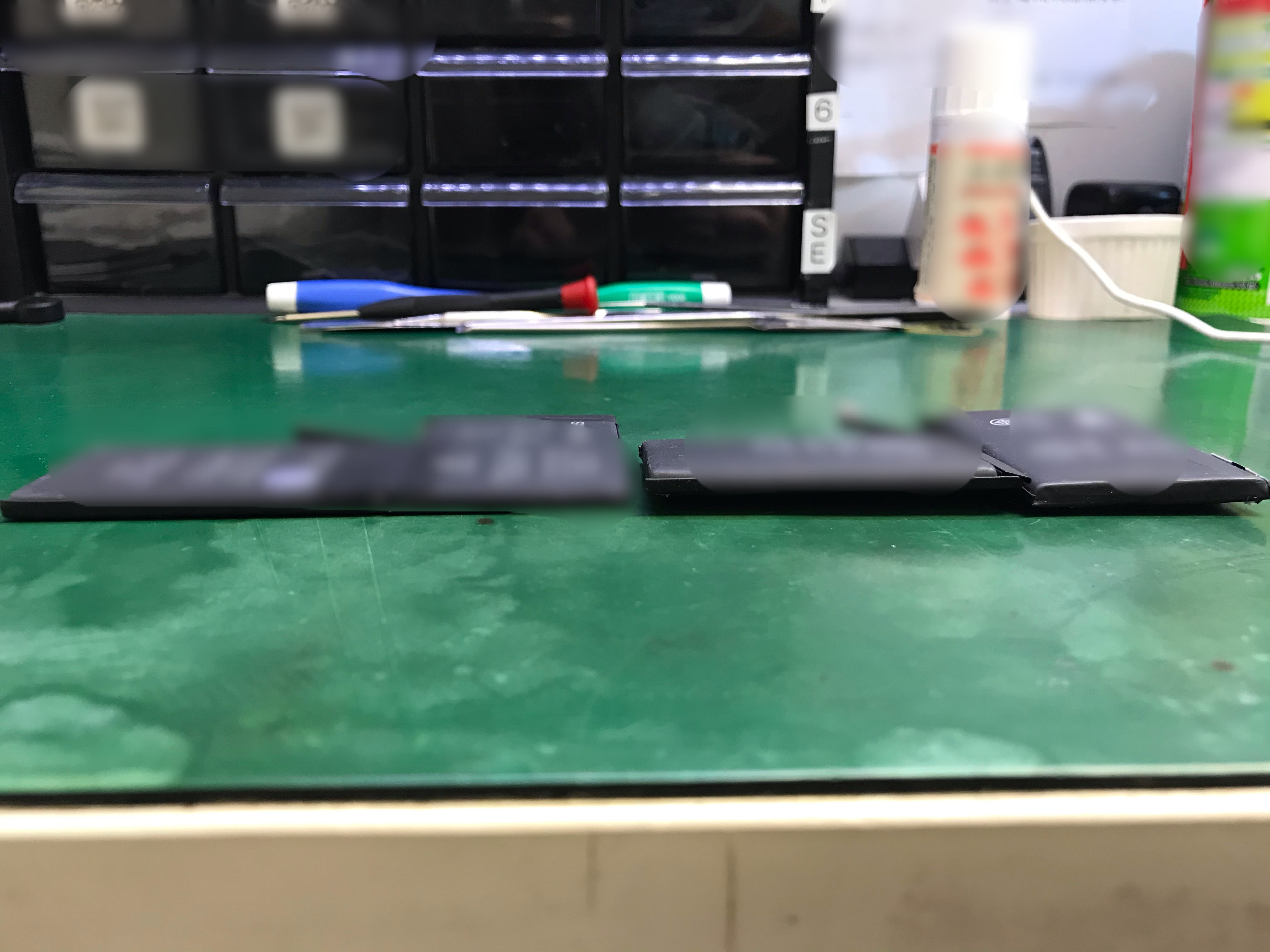 ↑右側が劣化により膨張してしまったiPhoneXのバッテリー