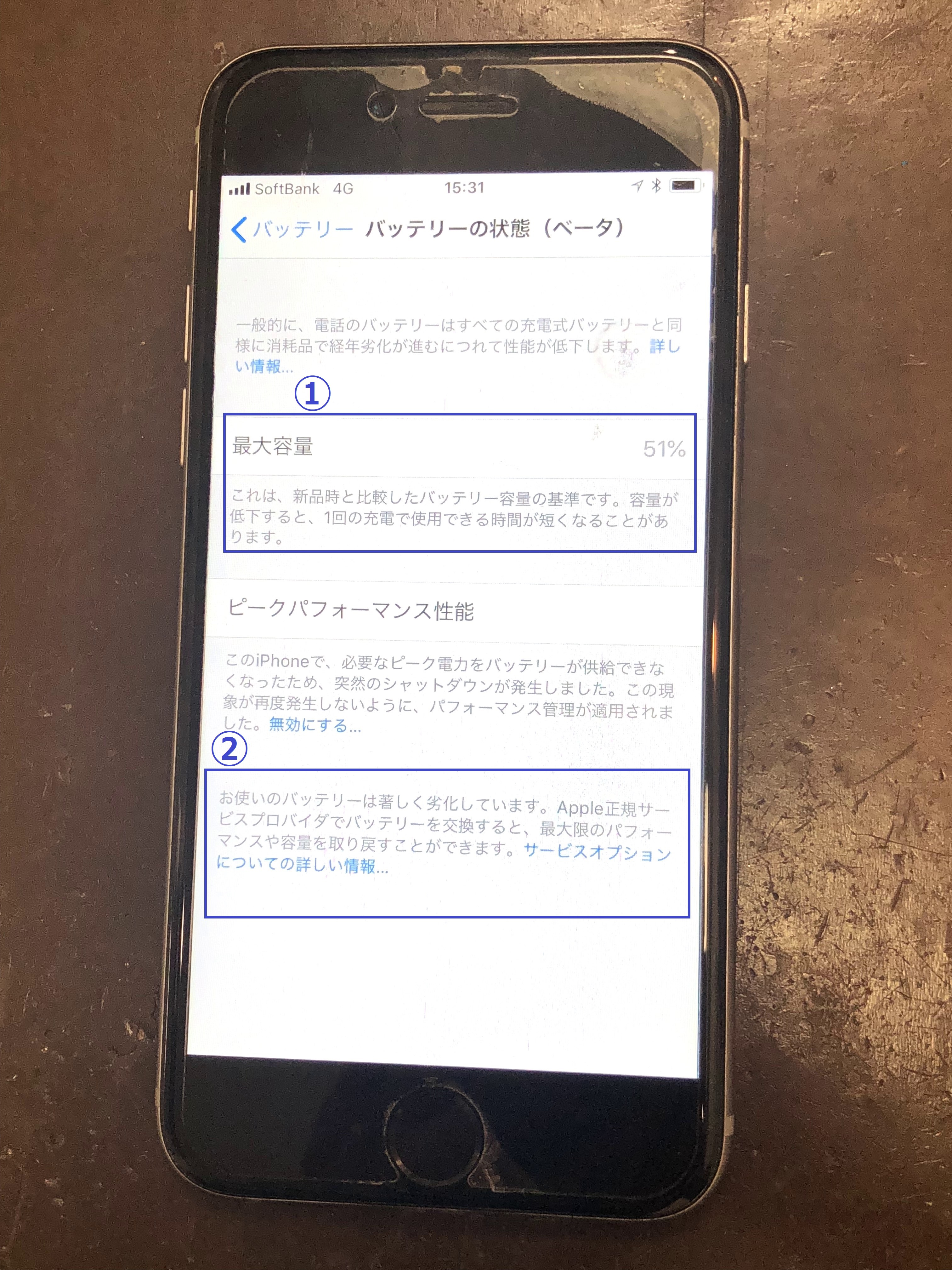 実際にご依頼をいただいたアイフォンの「バッテリーの状態」をもとに、ご説明いたします。