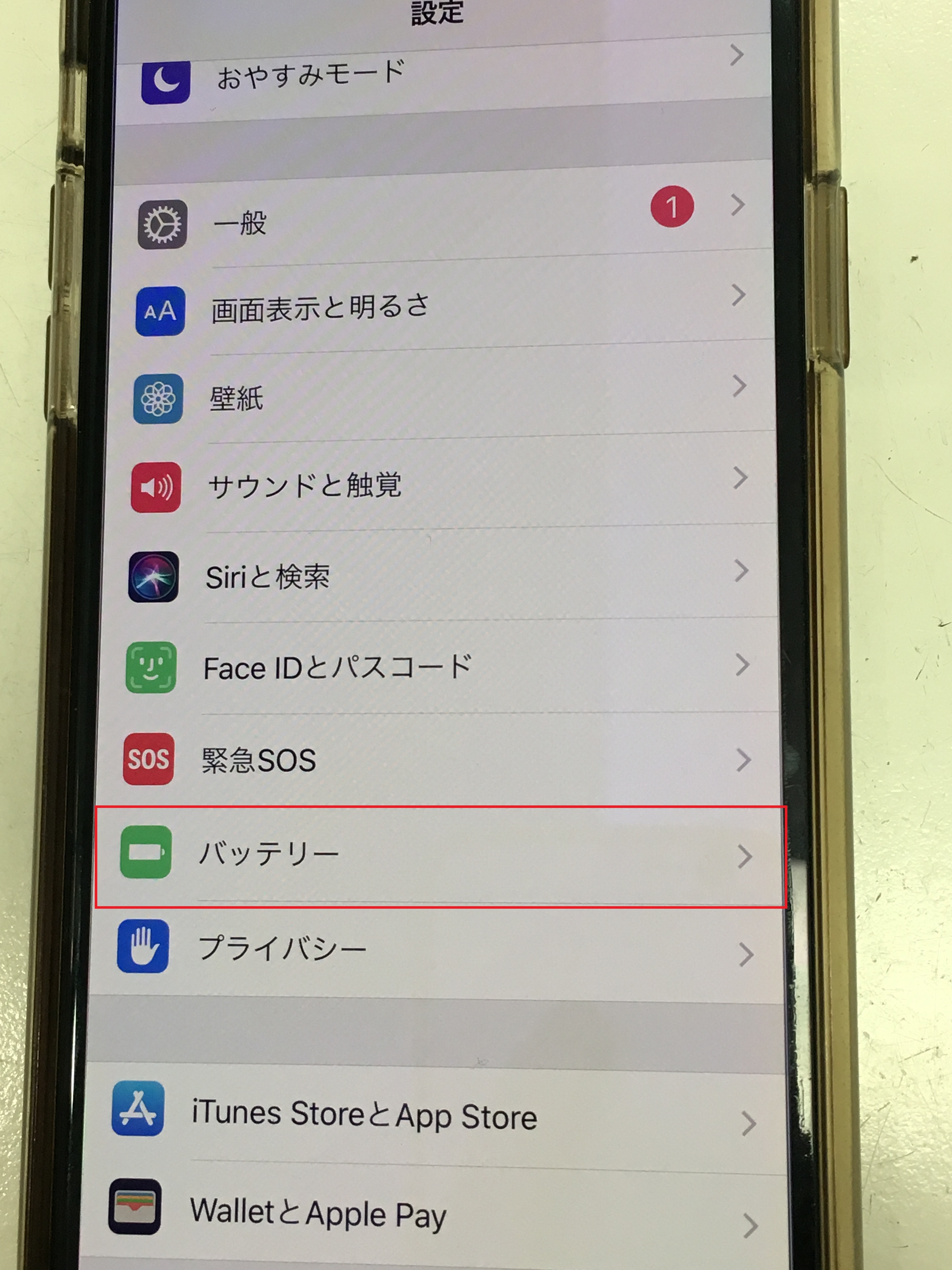 ②スクロールして「バッテリー」をタップします。