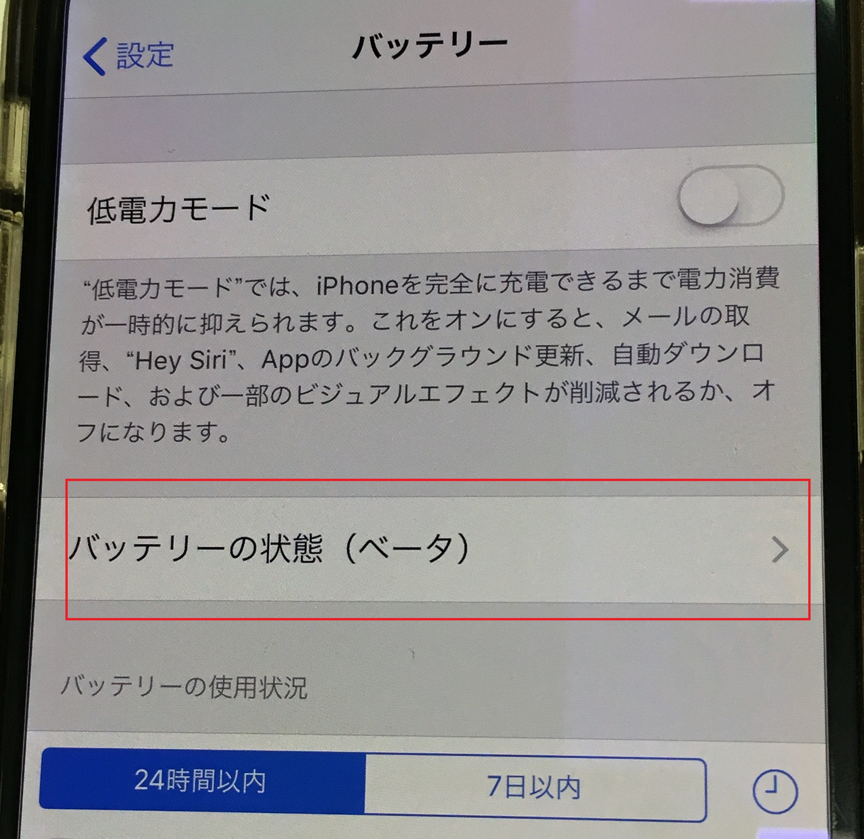 つまり、現在iPhoneで使用できる「バッテリーの状態」は