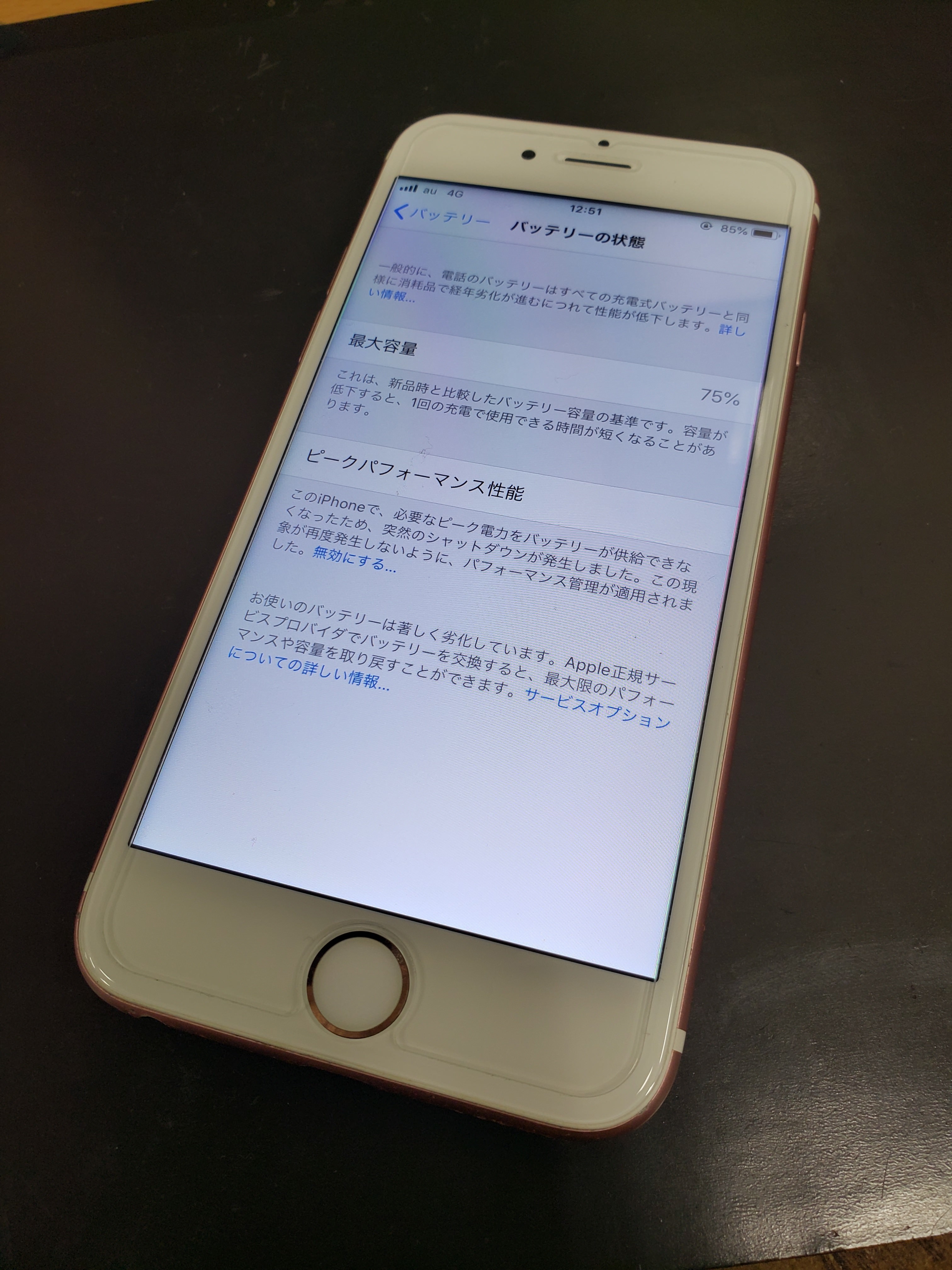 iPhone6以降に発売された端末で、IOS11.3以降の端末でしたらバッテリーが劣化しているか?ピークパフォーマンス性能かどうかを確認出来ます。