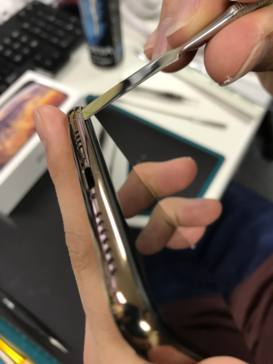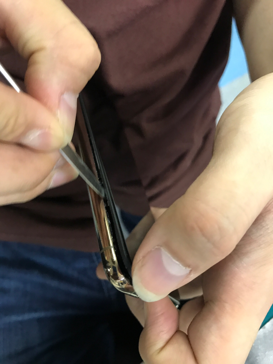 さて、画面と本体の間にスパチュラで隙間を開けて少しずつ分離させていきます。