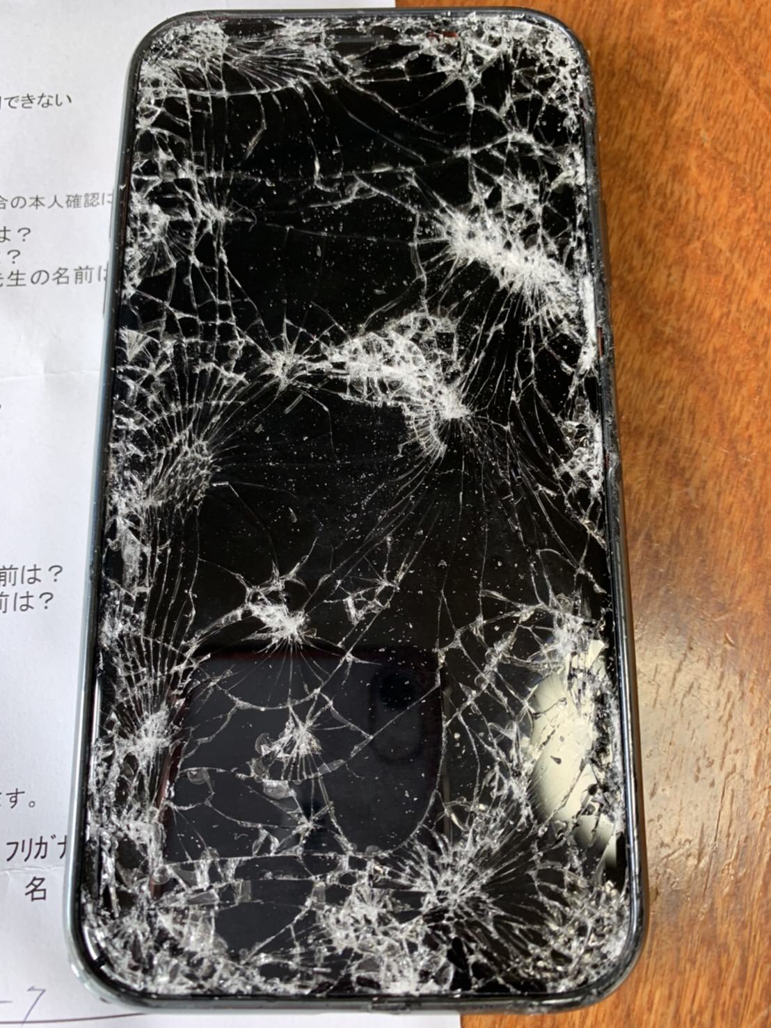 こちらがお預かりしたiPhone XRですがここまで激しくガラス割れているのは珍しいです。