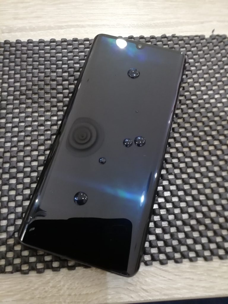 今回ガラスコーティングを施工させていただいた端末はHuawei P30 Proです。この端末は、画面両端にエッジがかかったスタイリッシュなフォルムが特徴ですが、その一方でエッジ部分に対応するフィルムが少ないというデメリットもあります。仮に対応フィルムがあっても、貼り付けが難しく、気泡が入りやすいといった問題が発生しがちです。