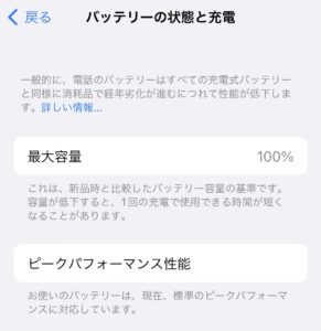 以前までは、非正規店でiPhoneのバッテリー交換を行うと、XS以降のモデルでは「バッテリー最大容量」の表示が「−」となり、確認することができませんでした。