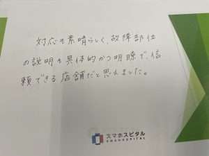 対応も素晴らしく、故障部位の説明も具体的かつ明瞭で、信頼できる店舗だと思えました。