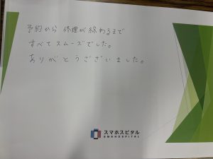 予約~修理が終わるまですべてスムーズでした。ありがとうございました。