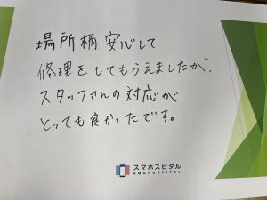 場所柄安心して修理をしてもらえましたが、スタッフさんの対応がとっても良かったです。