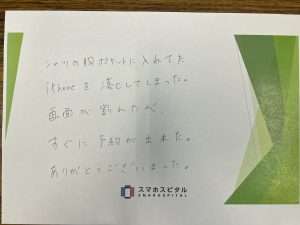 シャツの胸ポケットに入れていたiPhoneを落としてしまった。画面が割れたのがすぐに予約できました。高品質パネルだったのでガラスコーティング代は無料でした。