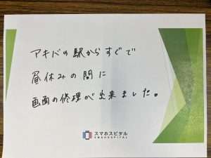 アキバの駅からすぐで昼休みの間に画面の修理ができました。