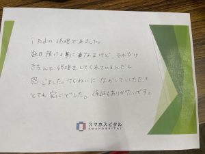 iPadの修理で来ました。数日預けることになるけどそれだけきちんと修理をしてくれているんだと感じました。丁寧に直していただいてとても安心でした。保証もありがたいです。