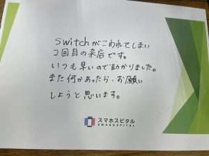 Switchが壊れてしまい2回目の来店です。 いつも早いので助かりました。また何かあったらお願いしようと思います