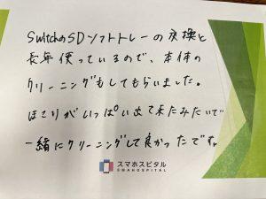 switchのSDソフトトレーの交換と長年使っているので、本体のクリーニングもしてもらいました。 ほこりがいっぱい出てきたみたいで一緒にクリーニングして良かったです。