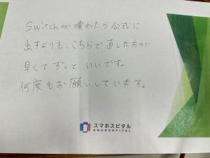 switchが壊れたら公式に出すよりも、こちらで直したほうが早くてずっといいです。 何度もお願いしています。