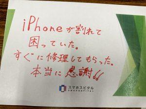 iPhoneが割れて困っていた。 すぐに修理してもらった。 本当に感謝!!