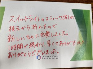 スイッチライトのスティック(左)が根本から折れたので 新しいものに交換しました。 1時間で終わり早くてありがたかった! ありがとうございました。