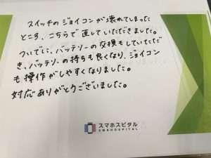 Switchのジョイコンが壊れてしまった所こちらで直していただきました。ついでに、バッテリーの持ちも良くなりジョイコンの操作がしやすくなりました。対応ありがとうございました。