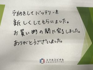 予約をしてバッテリーを新しくしてもらいました。 お買い物の間に完了しました。 ありがとうございました。