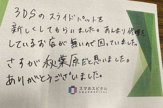 3DSのスライドパットの修理でご来店いただきました。