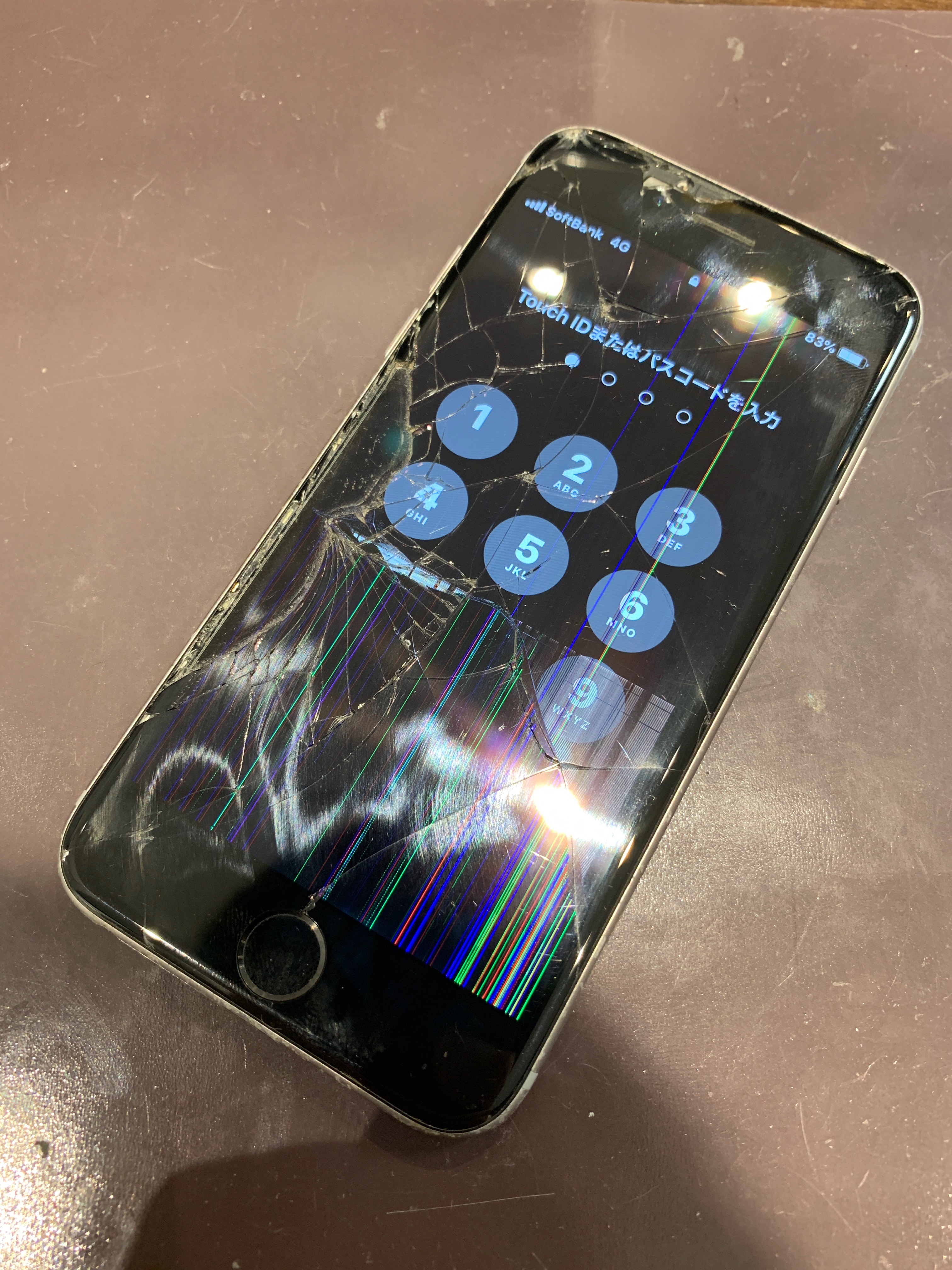 落としてしまいガラスが割れ液晶が破損してしまったiPhone。