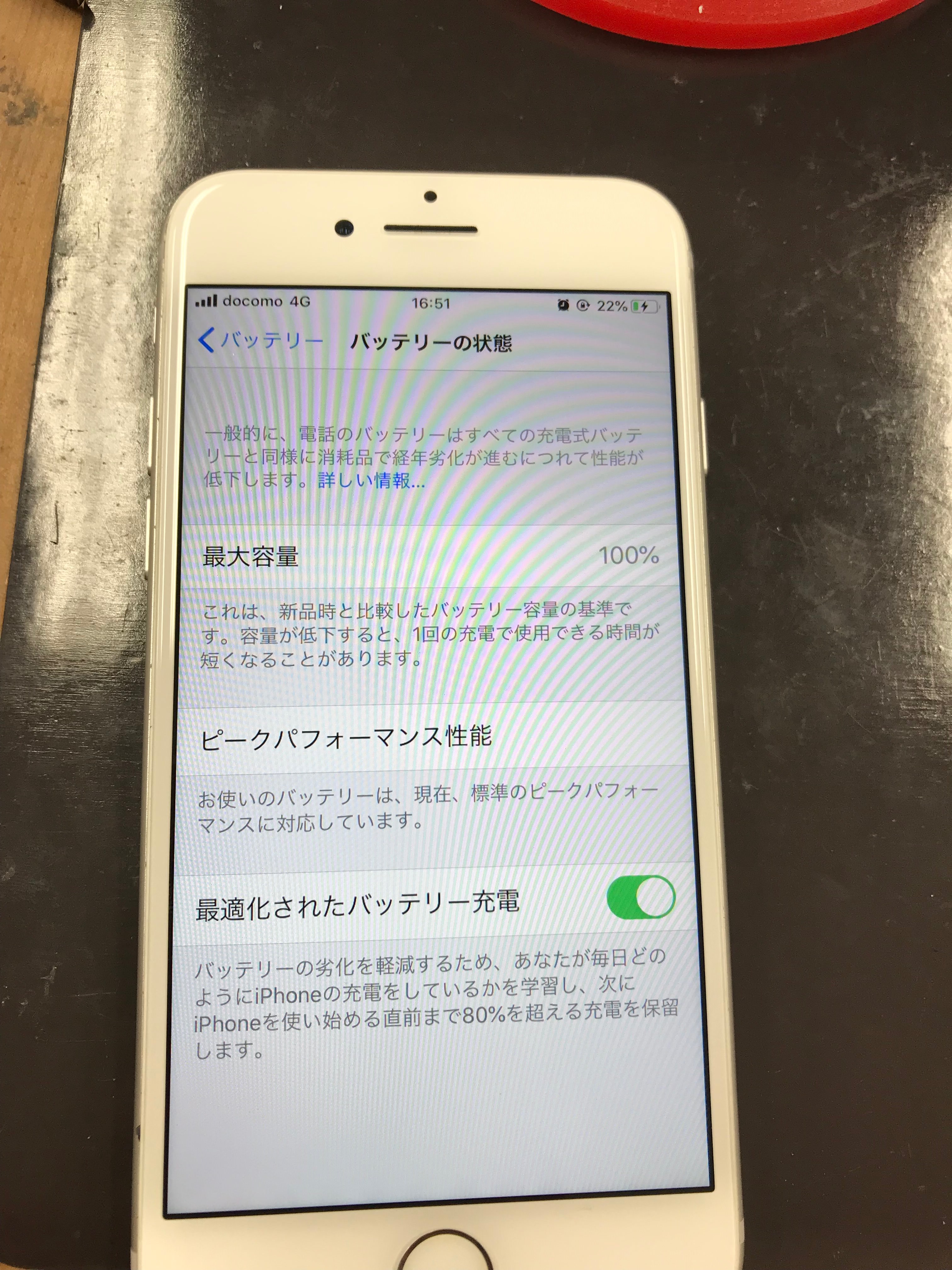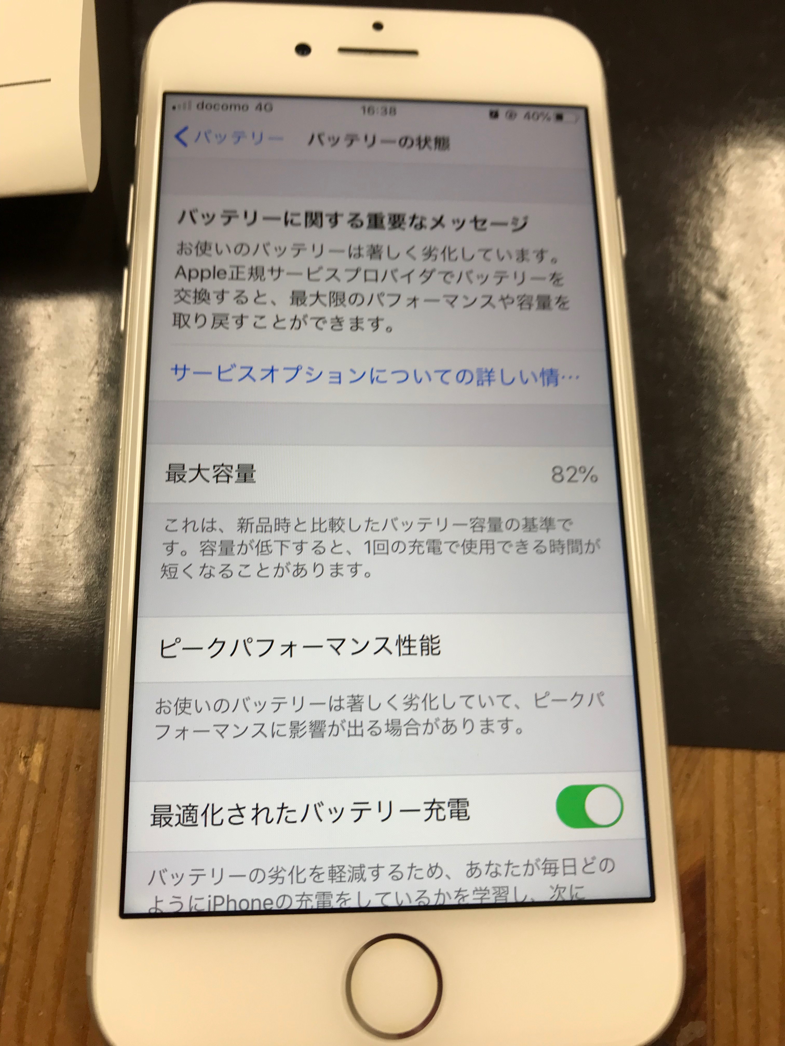 交換の目安としては最大容量が80%を切ると充電のヘリが早くなってくるのですが80%以上でもバッテリーが劣化しています表示の場合は交換をおススメします。