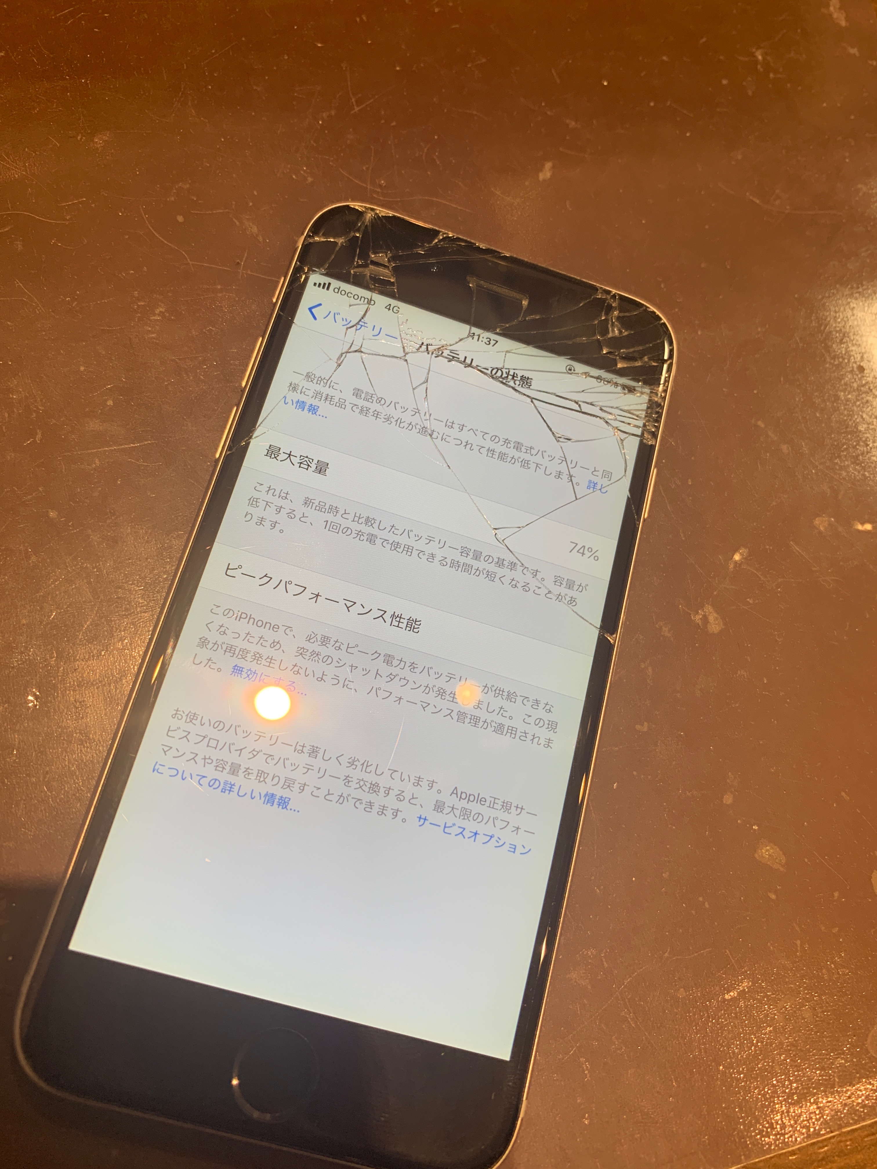 iPhone6画面割れ+電池もちが悪いバッテリー。一緒に交換修理できます!