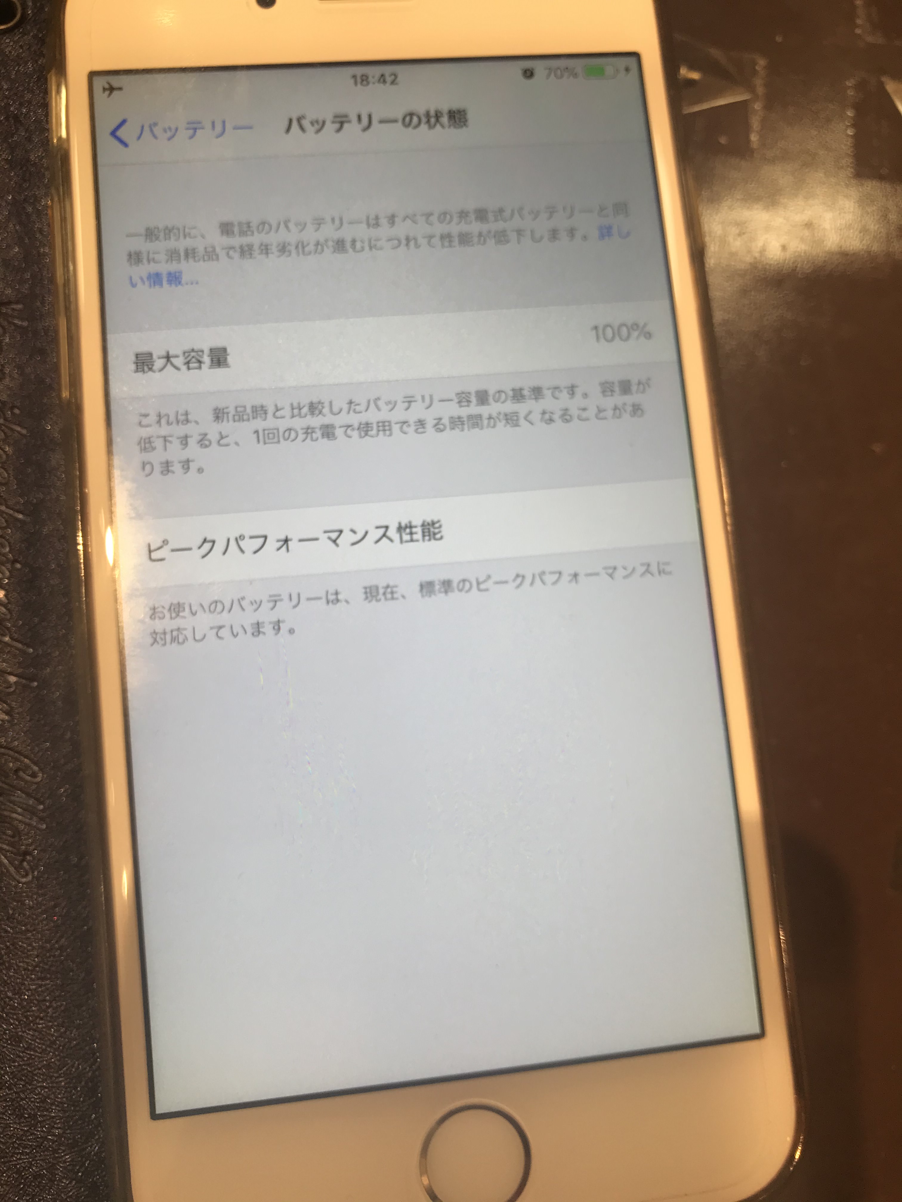 こちらはお預かりしたiPhone6の修理前のバッテリーの最大容量です。