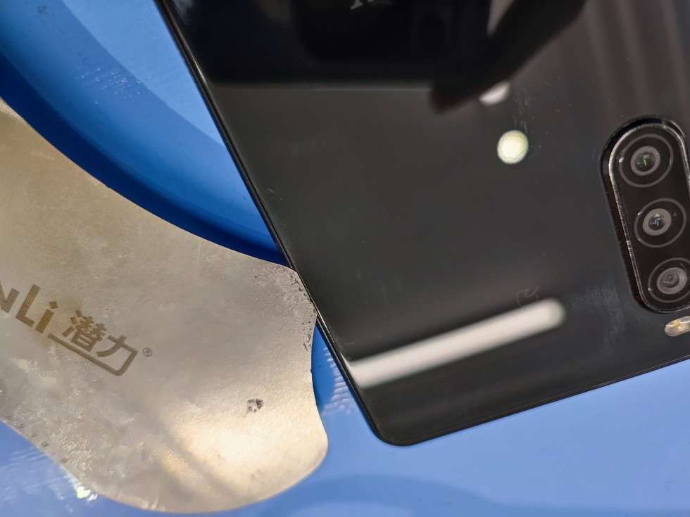 接着が弱まったら、フレームとバックパネルの隙間に薄いヘラを差し込みます。