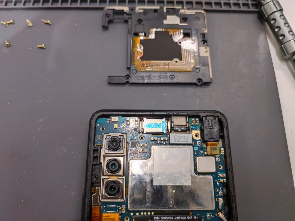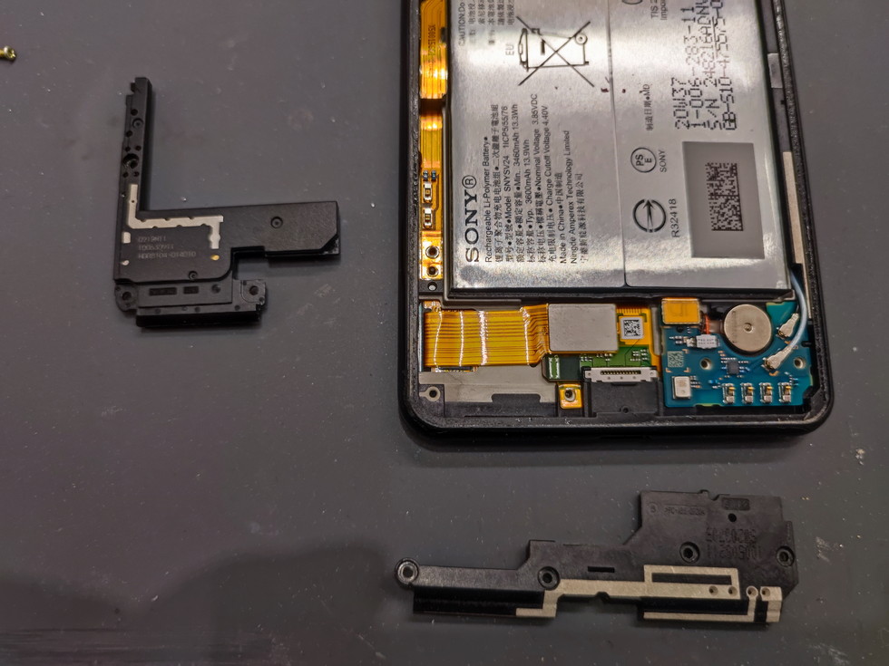 Xperia 10 IIは珍しく、筐体下部のサブ基板にディスプレイケーブルが繋がっています。