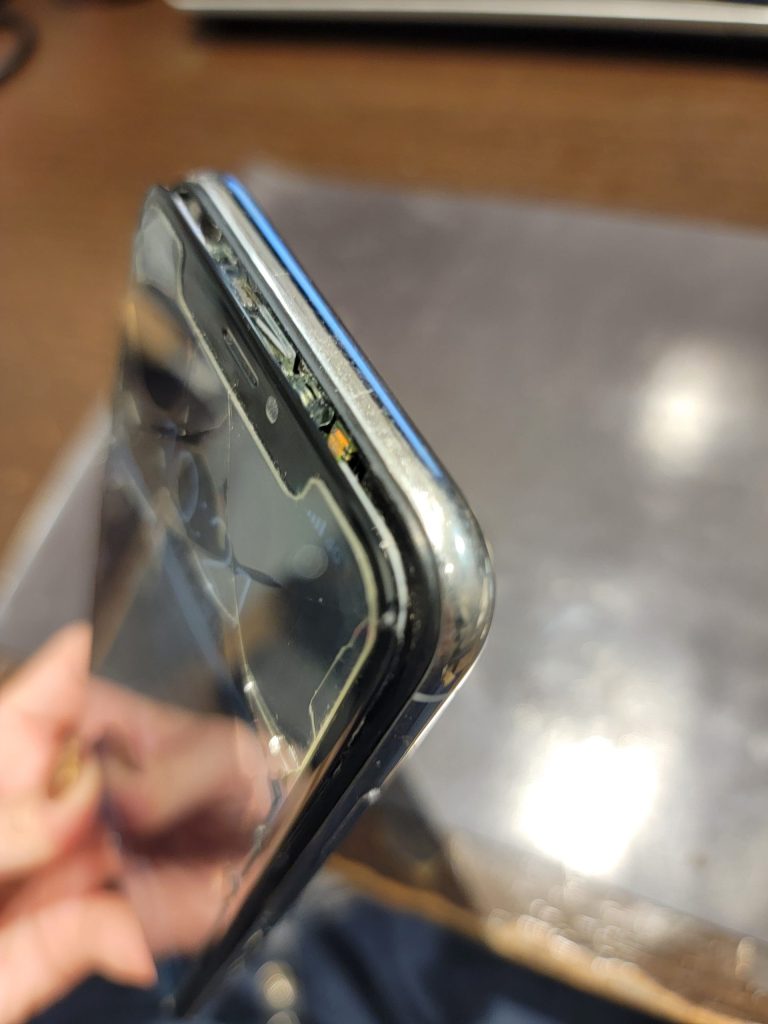 このようにガラス・液晶がベゼルがら剥離してしまっているので画面交換は必須の状態です。