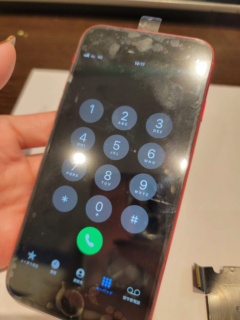 画面交換とドックコネクター同時交換修理でご対応させていただきました。