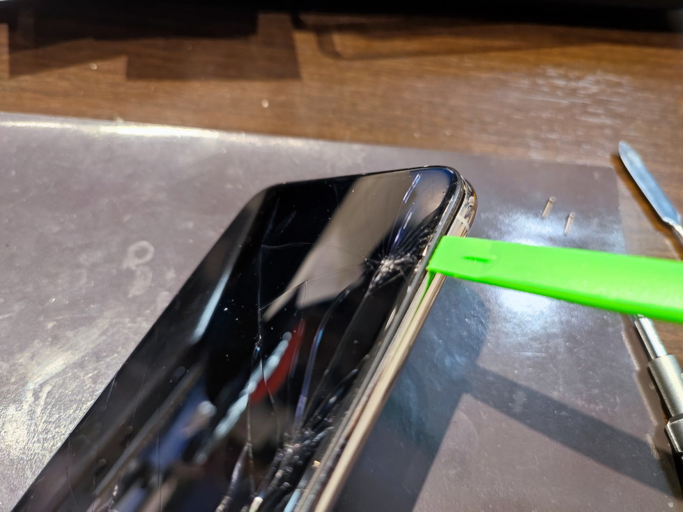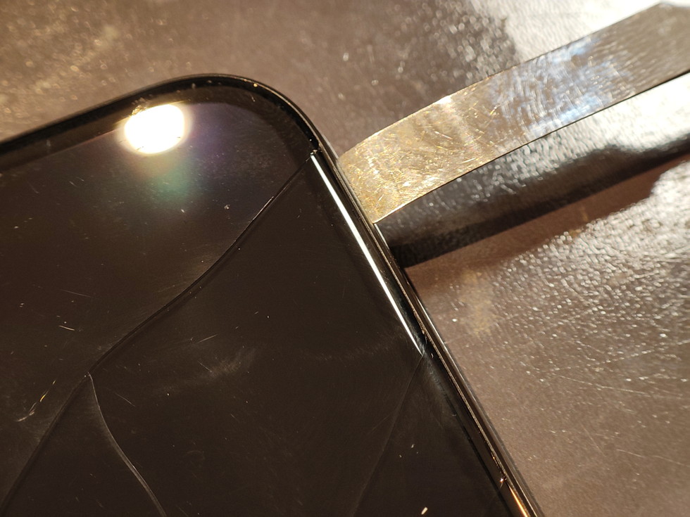 続けて、金属のヘラを差し込み画面を持ち上げていきます。
