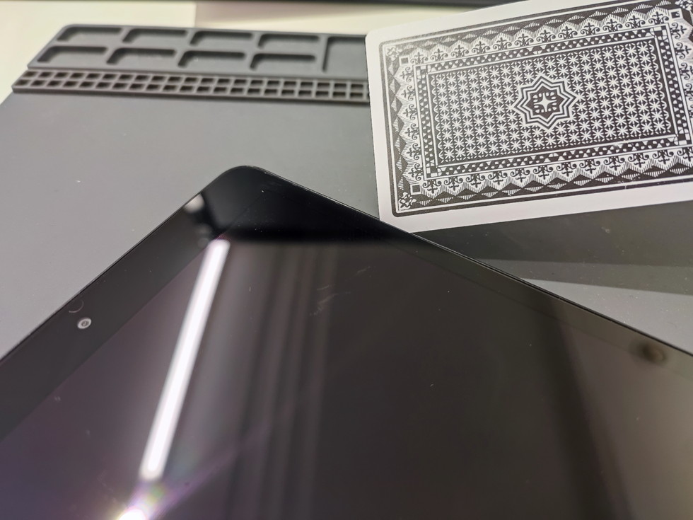 画面の加熱を行い、接着が弱まったらプラスチックカードで接着を剥がしていきます。