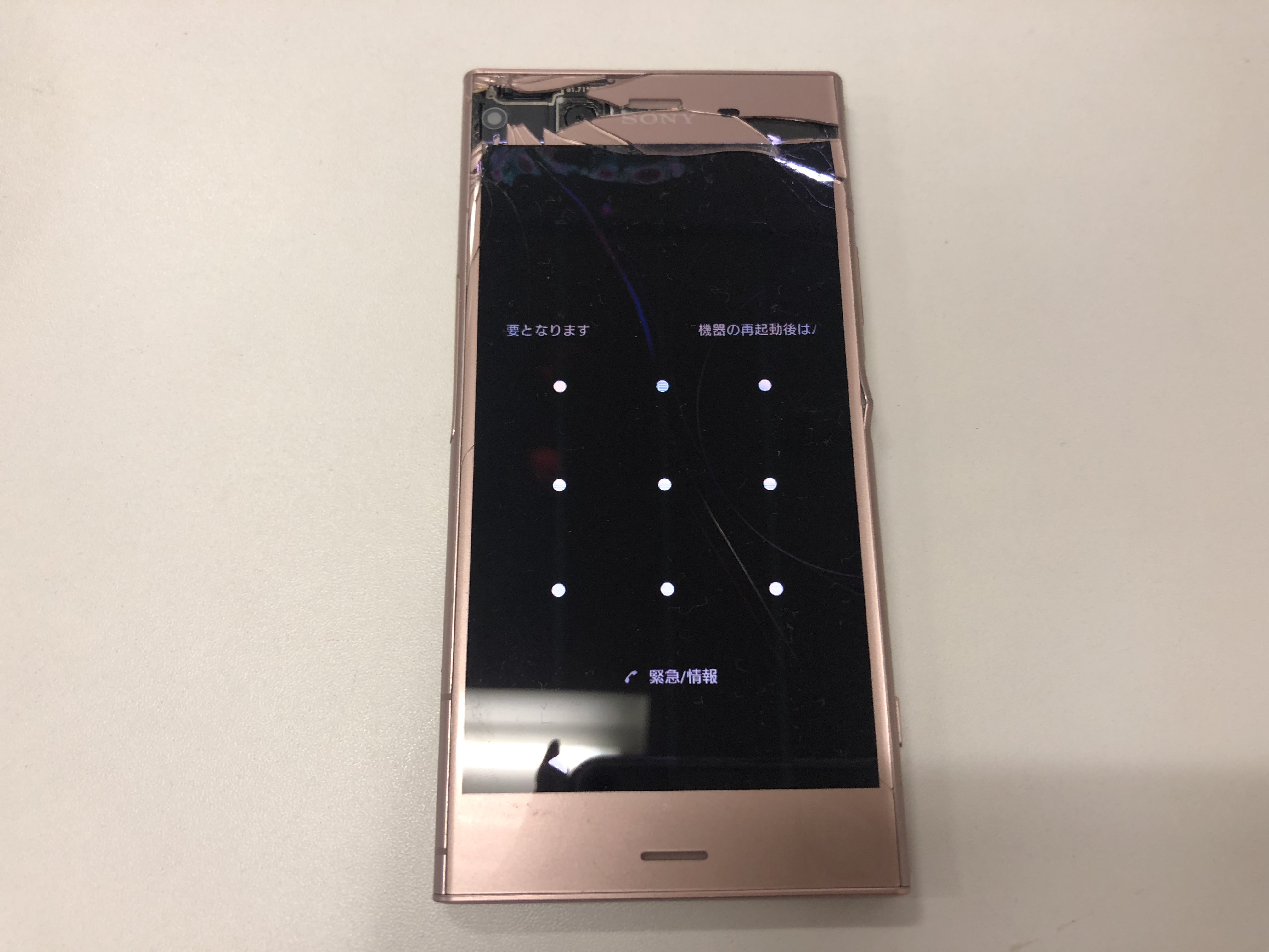 先日お持ち込みいただいた『XperiaXZ』は画面が割れてしまいしばらくしたら画面上部が欠けてしまったとの事でした。