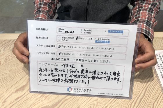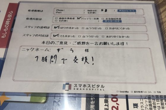 【iPhone7Plus】バッテリー劣化による交換修理 『Yumi様』よりのコメントを頂きました。
