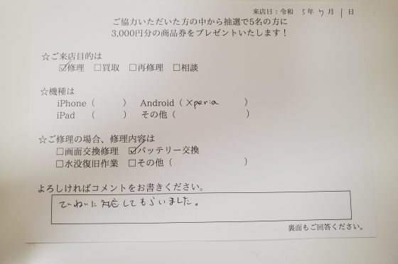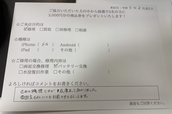 弊社の修理サービスをご利用いただいきましたお客様の声です。