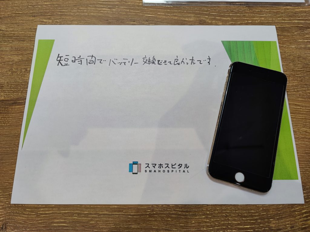 スマホスピタル厚木ガーデンシティ iPhone6sのバッテリー交換のお客様からコメントを頂きました!